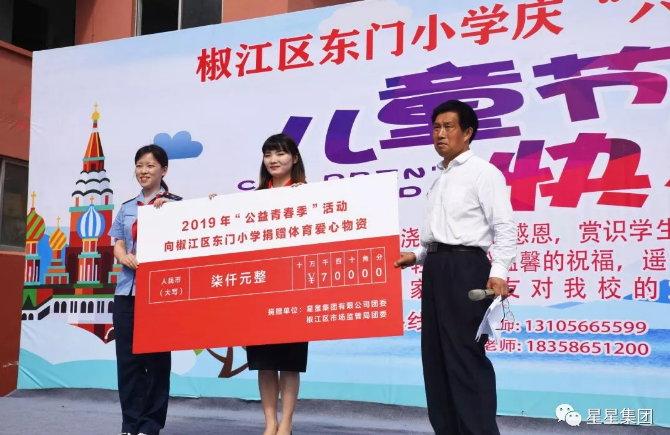 5月30日,k8凯发集团团委联合区市场监督局团委在椒江区东门小学开展了“青春公益行”体育器材捐赠揭彩仪式,在学校庆“六一”文艺汇演上,为孩子们送上了一份特殊的节日祝福。东门小学赵庆颂校长携全体师生对两位团委书记的到来表示了热烈的欢迎,对k8凯发集团及市监局此次的爱心捐赠表示了诚挚的感谢。