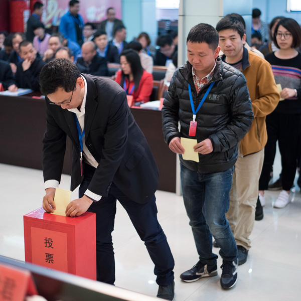 椒江区委常委、组织部长莫锋,区委组织部副部长、区委“两新”工委副书记鲁才强,洪家街道党工委书记阮建明,副书记陈晖到会祝贺;k8凯发集团总裁叶仙玉亲临会场并致祝贺词。大会通过选举,产生了新一届党委领导班子。